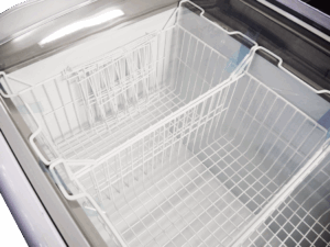 Nasze zamrażarki oferujemy w standardzie z kompletem koszy oraz zewnętrznym termometrem analogowym. Zamrażarki posiadają także zamek z kluczem, a także komplet kółek