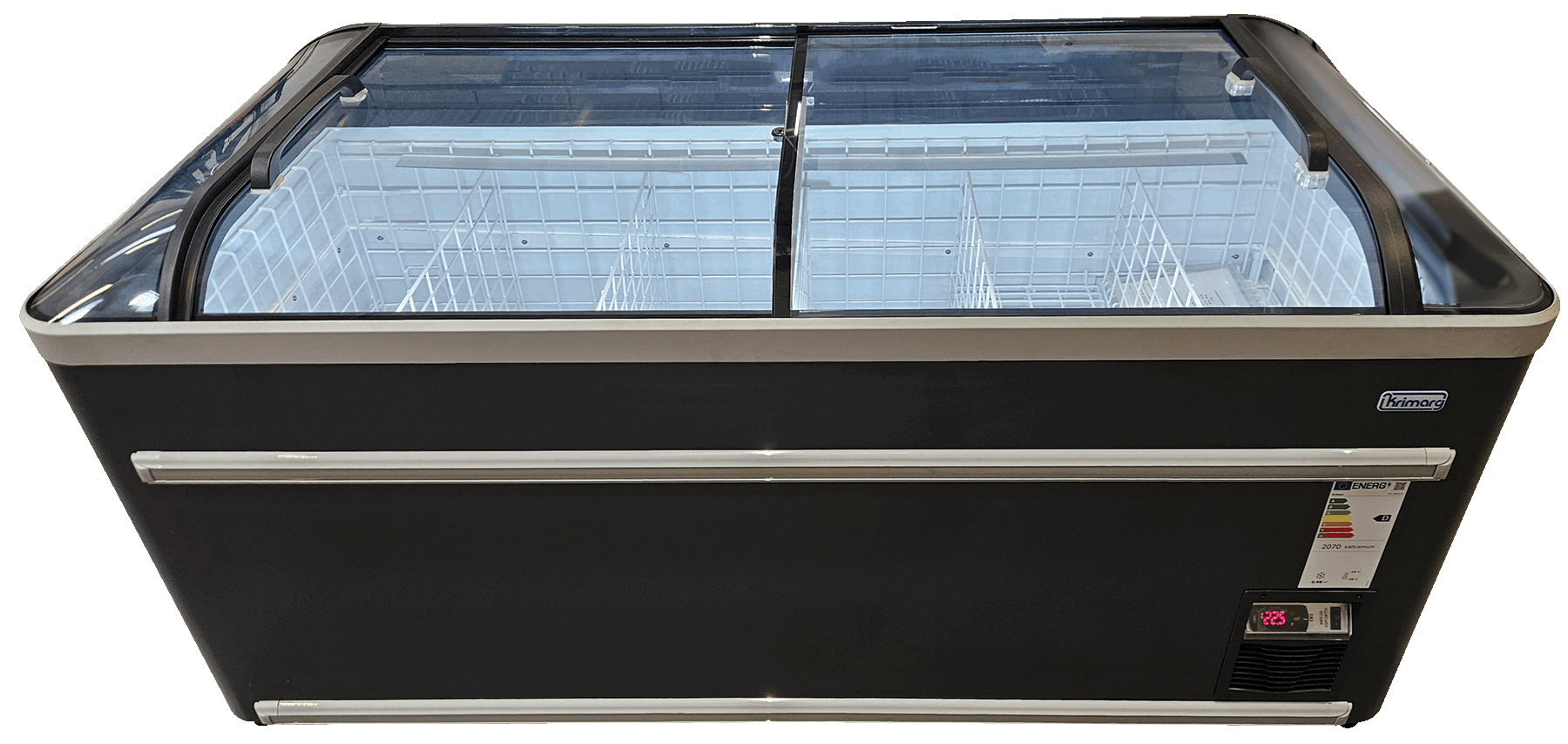 ZAMRAŻARKA ekspozycyjna przeznaczona dla większych sklepów i supermarketów, służąca do przechowywania lodów i żywności mrożonej z wypukłymi, przesuwnymi szybami, wyposażona w standardzie w kontroler elektroniczny z cyfrowym wyświetlaczem temperatury oraz oświetlenie LED.