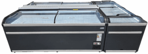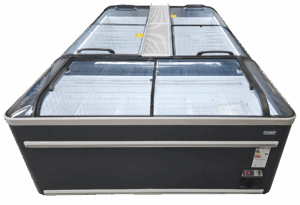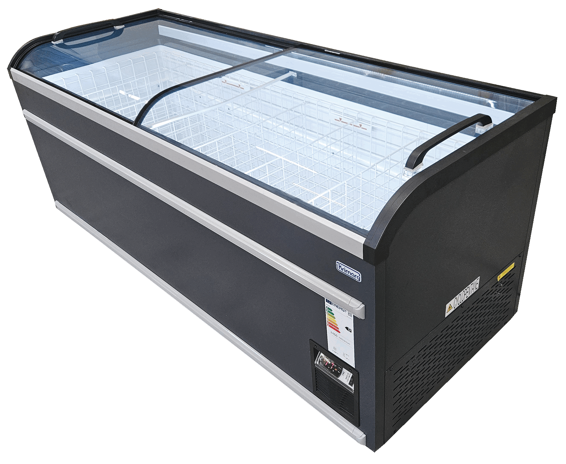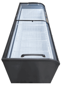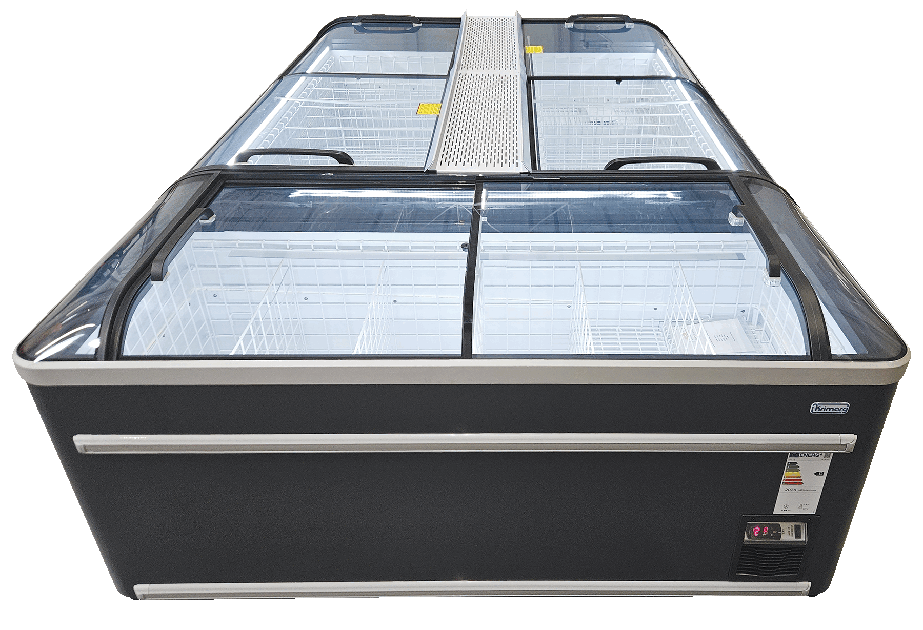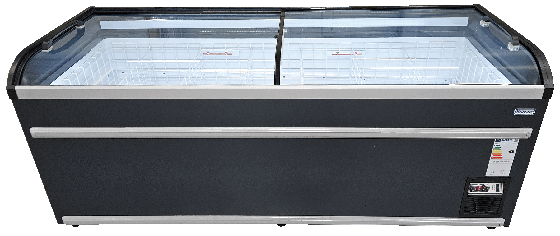 ZAMRAŻARKA ekspozycyjna przeznaczona dla większych sklepów i supermarketów, służąca do przechowywania lodów i żywności mrożonej z wypukłymi, przesuwnymi szybami, wyposażona w standardzie w kontroler elektroniczny z cyfrowym wyświetlaczem temperatury oraz oświetlenie LED.