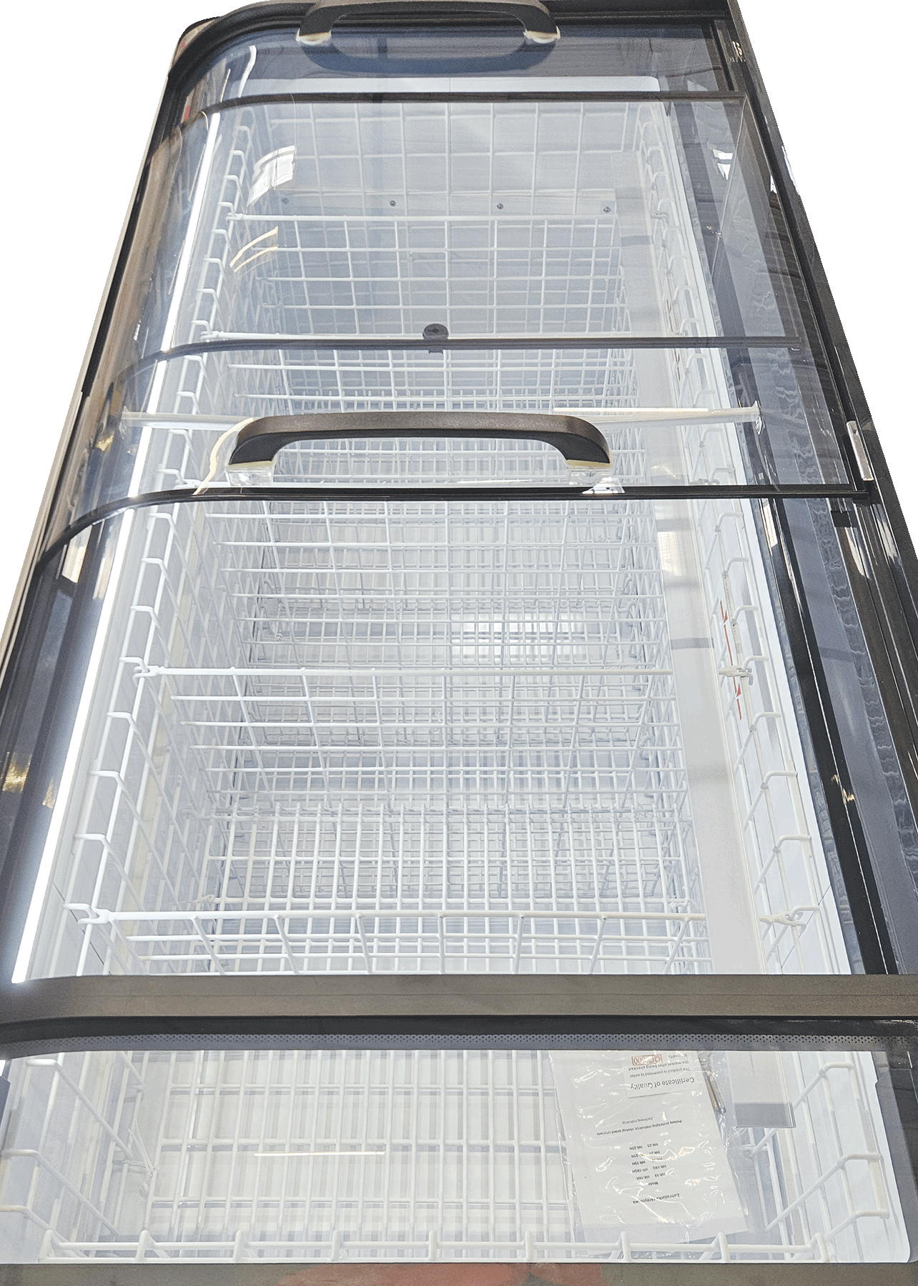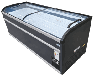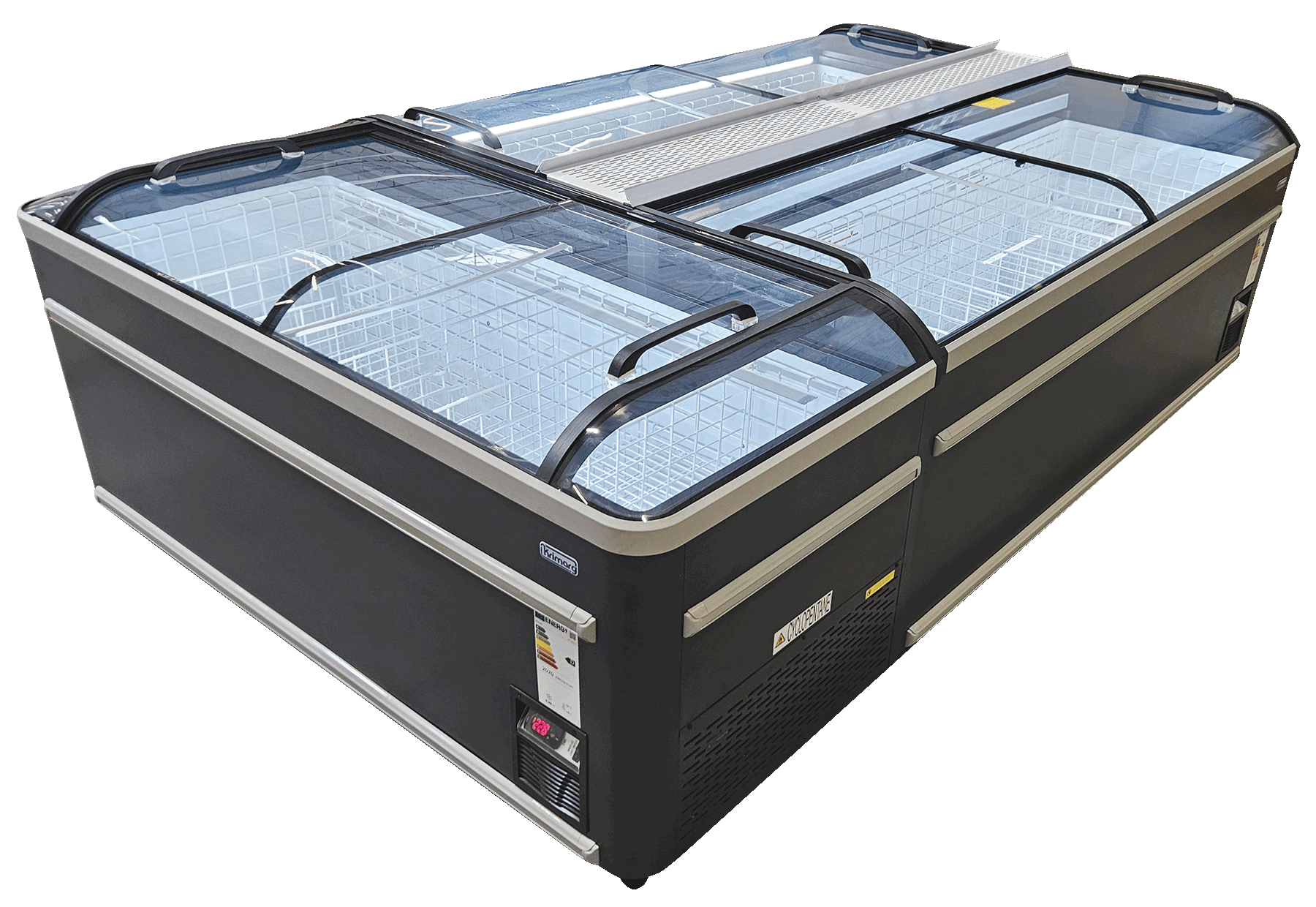 ZAMRAŻARKA ekspozycyjna przeznaczona dla większych sklepów i supermarketów, służąca do przechowywania lodów i żywności mrożonej z wypukłymi, przesuwnymi szybami, wyposażona w standardzie w kontroler elektroniczny z cyfrowym wyświetlaczem temperatury oraz oświetlenie LED.