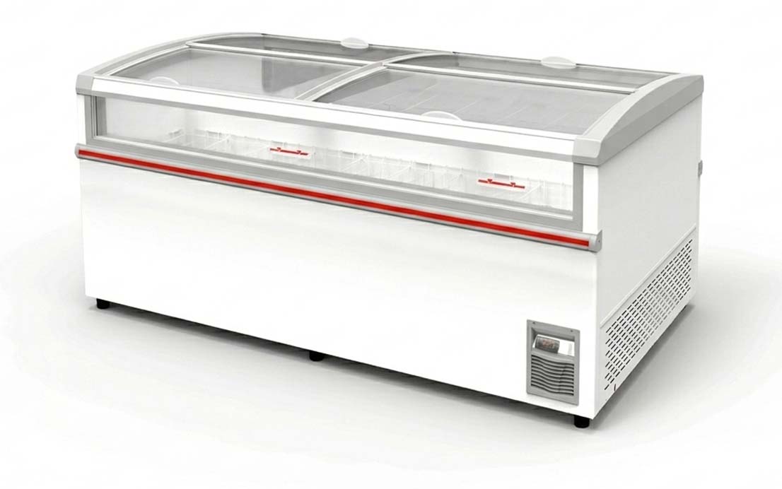 Dwustronna zamrażarka ekspozycyjna przeznaczona dla większych sklepów i supermarketów, służąca do przechowywania lodów i żywności mrożonej z wypukłymi, przesuwnymi szybami, wyposażona w standardzie w kontroler elektroniczny z cyfrowym wyświetlaczem temperatury oraz oświetlenie LED. Może występować jako samodzielna jednostka lub jako integralna część wyspy.