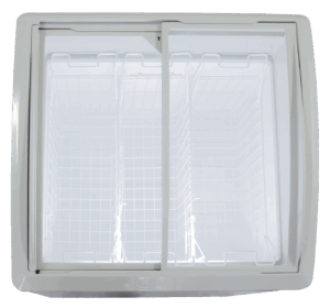 Przesuwne, lekko otwierające się szyby, zapewniają łatwy dostęp do przechowywanych towarów.
