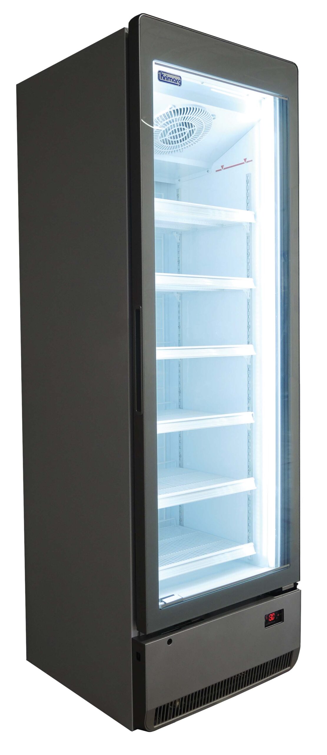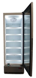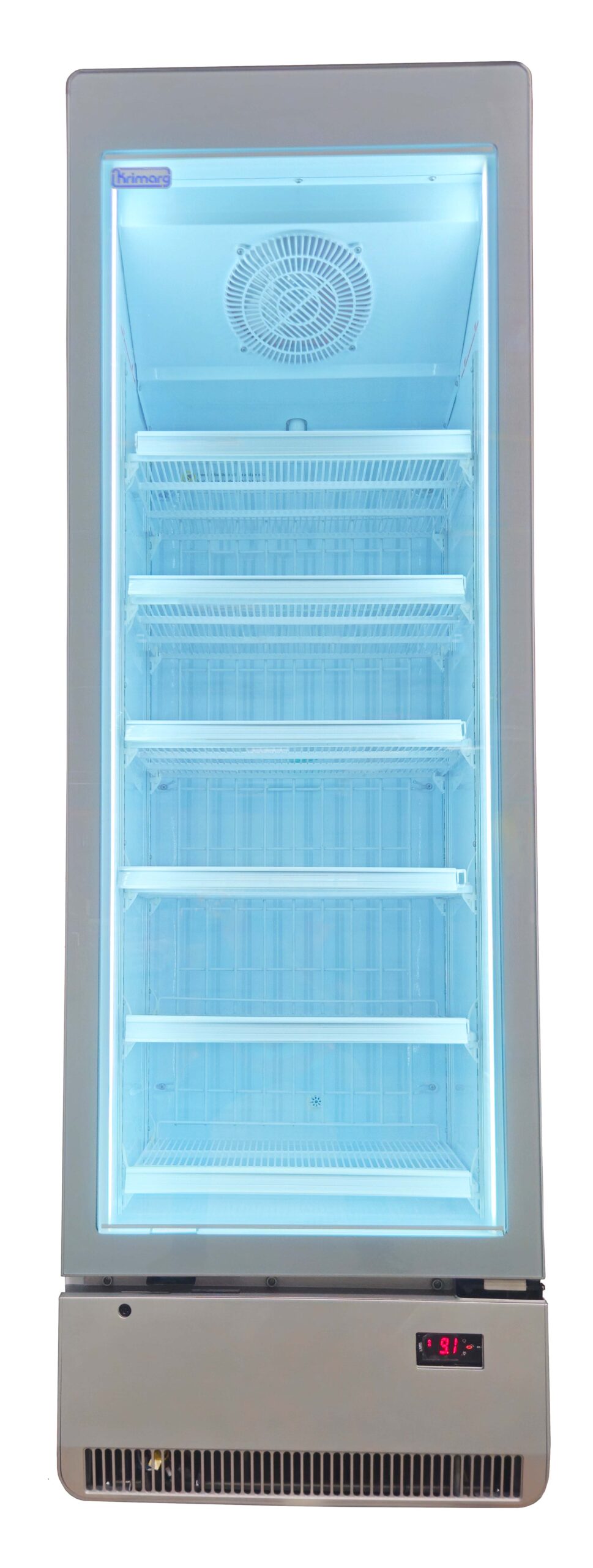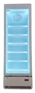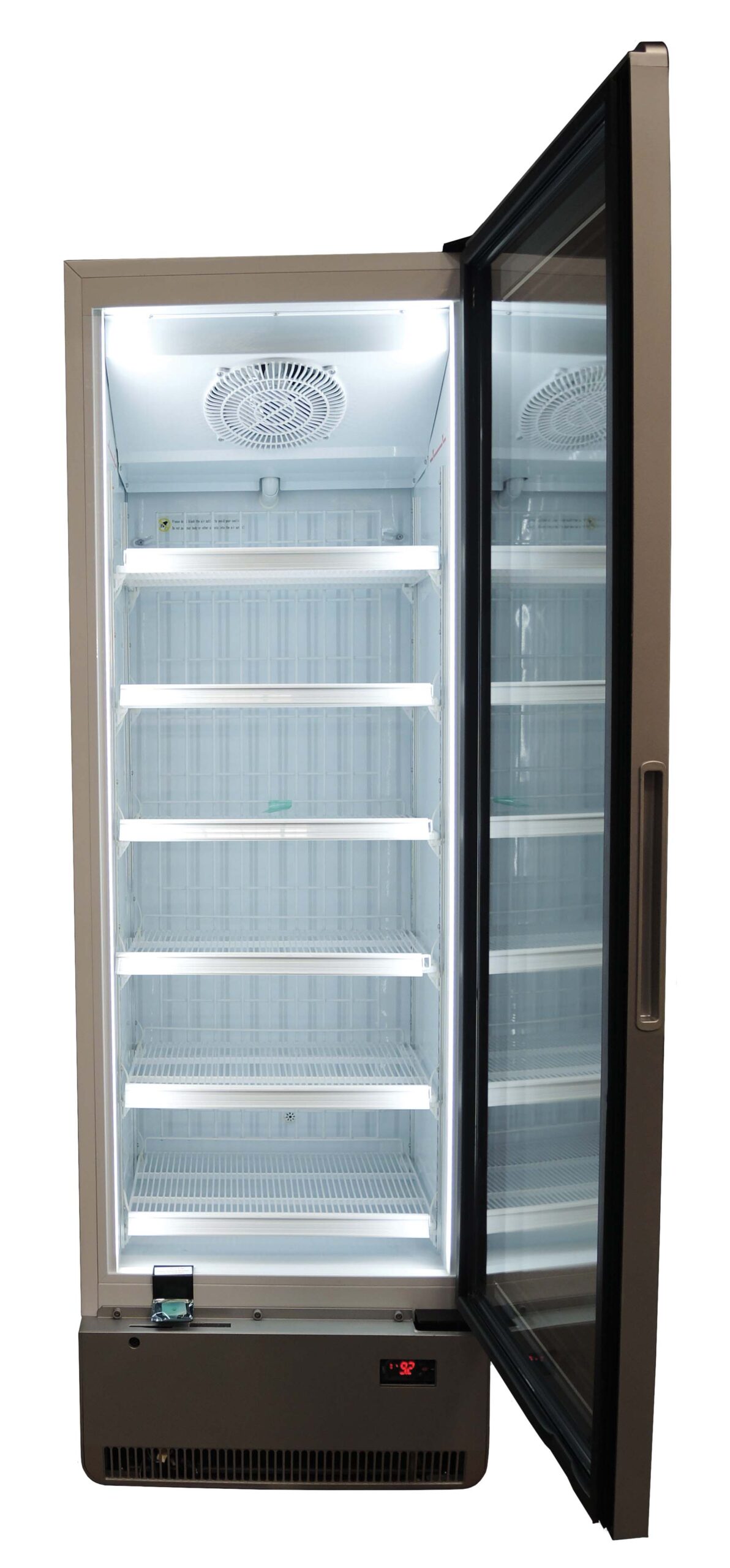 Zamrażarka pionowa z przeszklonymi drzwiami, większa wersja popularnego modelu SD-208H. Idealne rozwiązanie dla sklepów, z ograniczoną powierzchnią.
