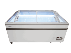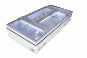 ZAMRAŻARKA ekspozycyjna przeznaczona dla większych sklepów i supermarketów, służąca do przechowywania lodów i żywności mrożonej z wypukłymi, przesuwnymi szybami, wyposażona w standardzie w kontroler elektroniczny z cyfrowym wyświetlaczem temperatury oraz oświetlenie LED.